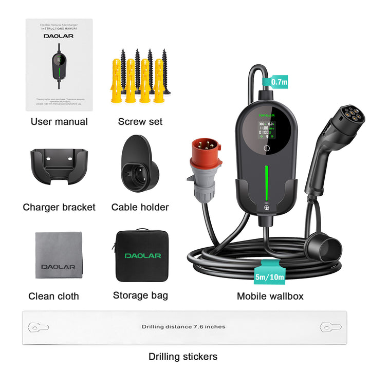[Huippumalli] Daolar 11kw Sähköauton laturi 3-vaihe 16A Type2 | Sovellusohjaus (WiFi) | B-tyypin vikavirtasuoja | Ajastin