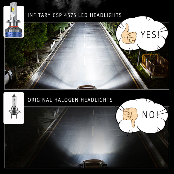 ⚡ 1000 % kirkkaampi & erittäin tarkka valokeila (27000LM, 130W): Päivitä himmeistä halogeeneista alan johtavaan 130W (sarjaa kohden) tehoon, joka tuottaa uskomattomat 27 000 lumenia kirkasta, 6500K valkoista valoa. Sisältää edistykselliset 15-ytimiset CSP 4575 -sirut supertarkkaa, leveämpää ja pidempää valokeilaa varten, varmistaen turvallisemman yöajon ilman pimeitä kohtia.