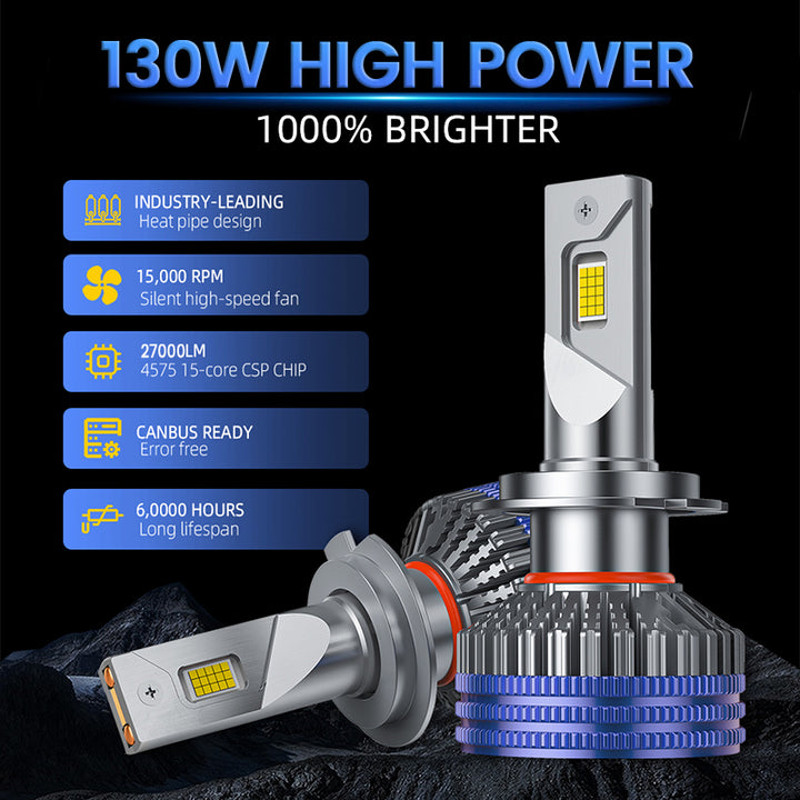 Daolar H7 LED Xenon -polttimot, 130W 27000LM Erittäin kirkas ajovalopolttimo, kaksoislämpöputkijäähdytys, CANBUS-virheetön H4 H7 H11 9005 9006